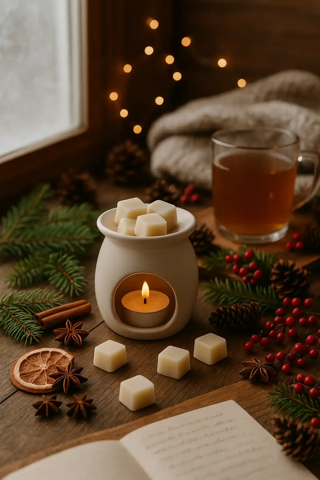 A gentle transition from fall to winter, where earthy leaves meet soft spice in a hushed, golden aroma.