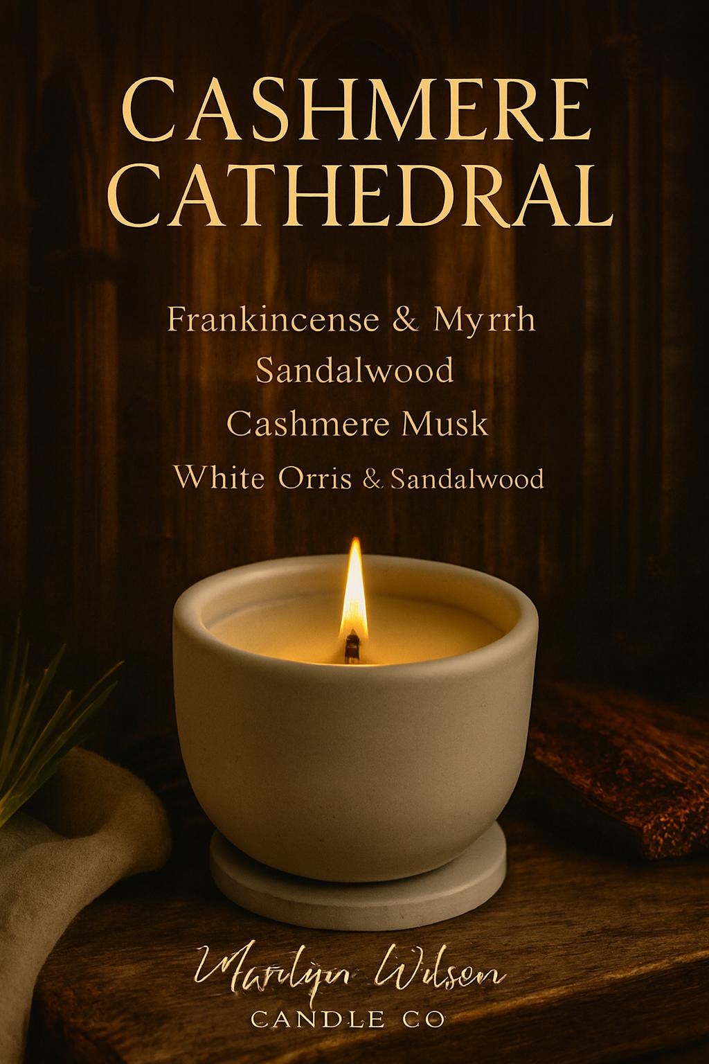 Sunday quiet, velvet soft. The first light carries a hush of frankincense and myrrh, then cashmere musk wraps the room like a favorite stole. Sandalwood steadies the moment, white orris smooths the edges, and the space turns sacred and soft. Cashmere Cathedral is warmth with presence, elegant enough for company, intimate enough for you.
