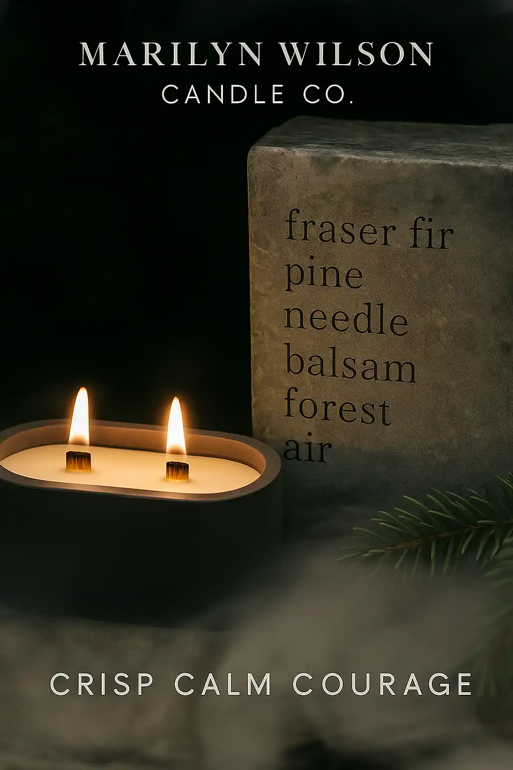 Crisp Calm Courage opens with the clarity of Fraser fir and pine needles, sharp, green, unmistakably alive. Balsam follows close behind, soft but sure, like breath through cold air. And then comes the hush…