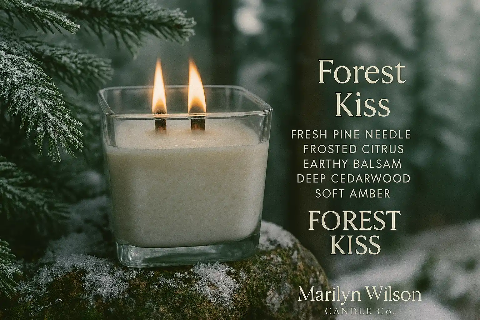 Forest Kiss captures the stillness of nature and brings it into your space with quiet grace. The moment the flame is lit, fresh pine needles awaken the air with crisp clarity. Frosted citrus follows like a cool breeze at sunrise, delicate and bright.