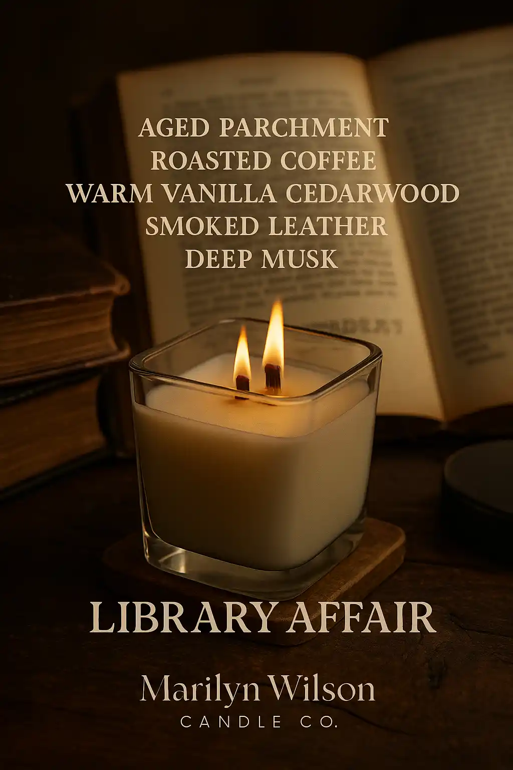 Library Affair is a slow burn for the soul. It begins with the unmistakable allure of aged parchment and roasted coffee, stirring something deep and familiar. Warm vanilla softens the edges, drawing you closer, while cedarwood and smoked leather ground the space in richness and depth. A final layer of deep musk lingers in the air, like a story you don’t want to end.