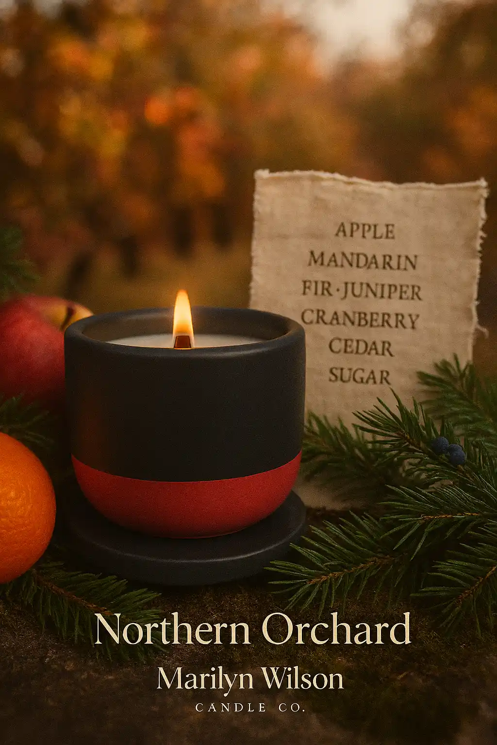 Experience the changing of the seasons in every breath. Northern Orchard opens with the fresh sweetness of apple and mandarin, followed by the cool, resinous scent of fir and juniper. Tart cranberry adds a vibrant twist, while smooth cedar and a hint of sugar create a cozy, grounding finish.