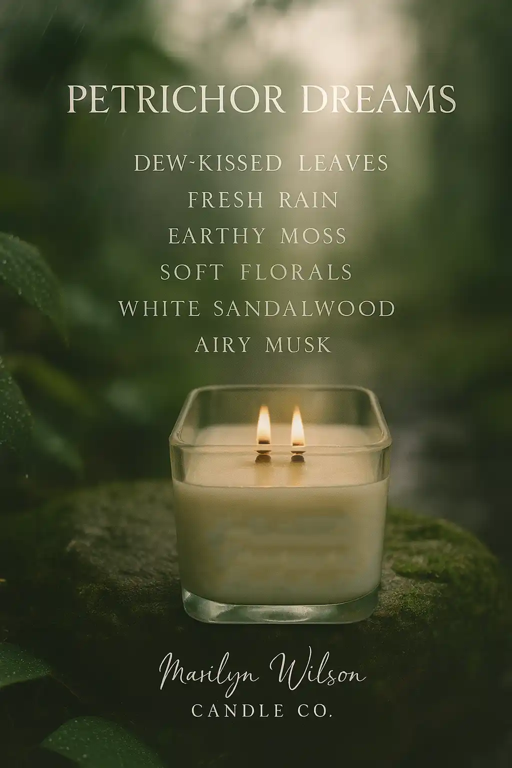 Petrichor Dreams captures that sacred stillness, the scent of dew-kissed leaves and soft rain soaking into moss-covered ground. Gentle florals rise like a quiet memory, while white sandalwood and airy musk drift through the air like a dream you don’t want to wake from.