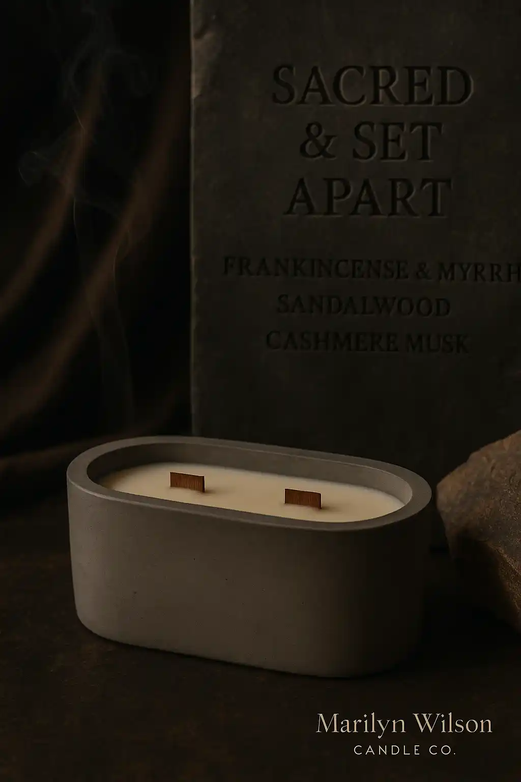 Sacred & Set Apart carries the ancient richness of frankincense and myrrh, deep, resinous, and full of knowing. Creamy sandalwood softens the edges, while cashmere musk cloaks the space in quiet grace.